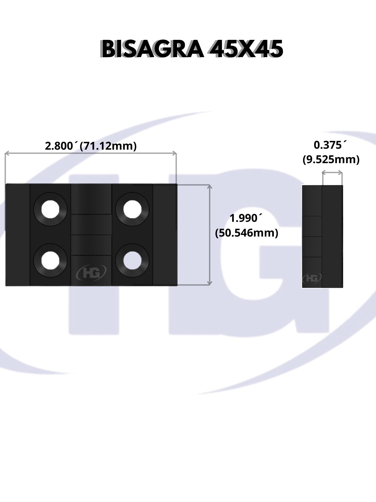 BISAGRA DE NYLON NEGRO PARA PERFIL 45X45